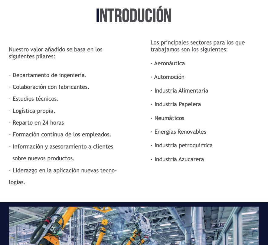 NOS MANTENEMOS EN EL MERCADO NACIONAL EN UNA POSICIÓN PRIVILEGIADA, GRACIAS A TENER REPRESENTADAS LAS MEJORES REFERENCIAS DEL MERCADO INTERNACIONAL EN CASI TODO EN STOCK Y SERVICIO AL CLIENTE PROFESIONAL DEPARTAMENTO DE INGENIERÍA, COLABORACIÓN CON FABRICANTES, ESTUDIOS TÉCNICOS INDUSTRIALES, PUESTA EN MARCHA DE TODOS LOS PROJECTOS INDUSTRIALES Y MANTENIMIENTO DESDE PRINCIPIO A FIN. MAQUINARIA REHABILITADA PARA LA INDUSTRIA DE LA INJECCIÓN Y EXTRUSIÓN DE PVC PARA TUBERIAS SANITARIAS Y CONSTRUCCIÓN MAQUINARIA PARA PET (BOTELLAS PLÁSTICO), ,